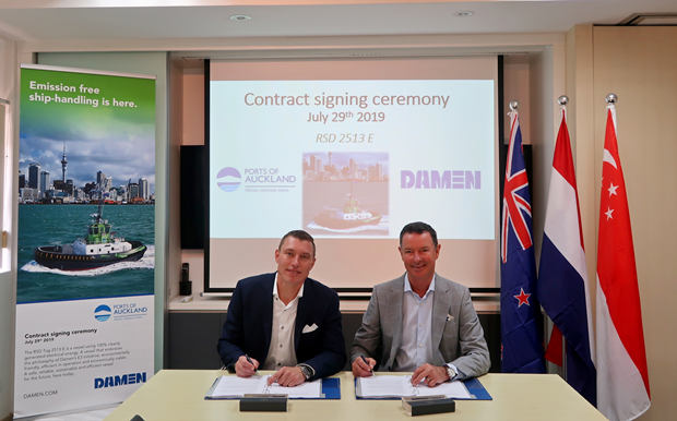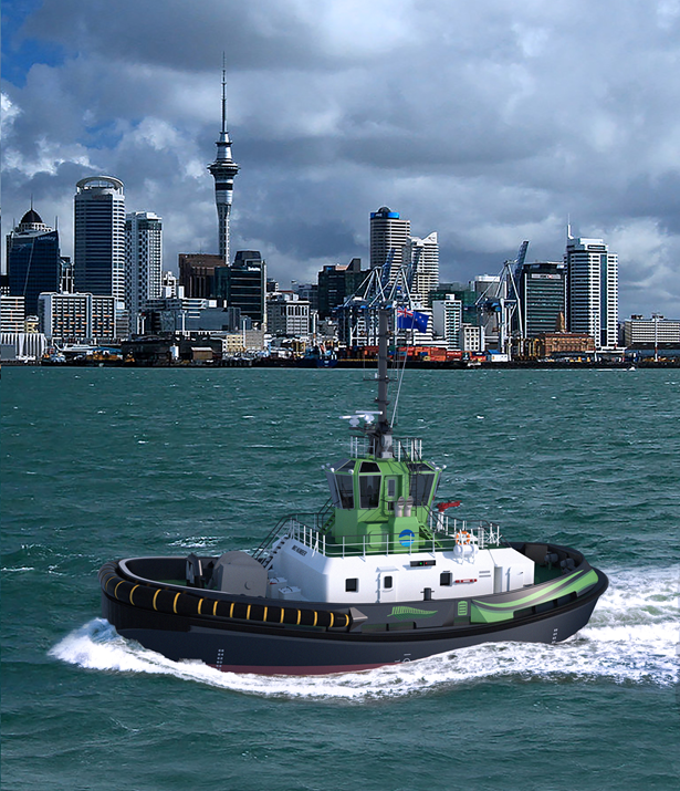 2019年7月29日,達門船廠集團與新西蘭奧克蘭港口簽訂了一項全世界創新型的船舶設計與建造合同——世界首艘完全由純電力驅動的雙向拖輪RSD-E Tug 2513,系柱拖力可達到70噸。該拖輪憑借其無與倫比的可持續性表現,完善了港口的綠色能源循環。