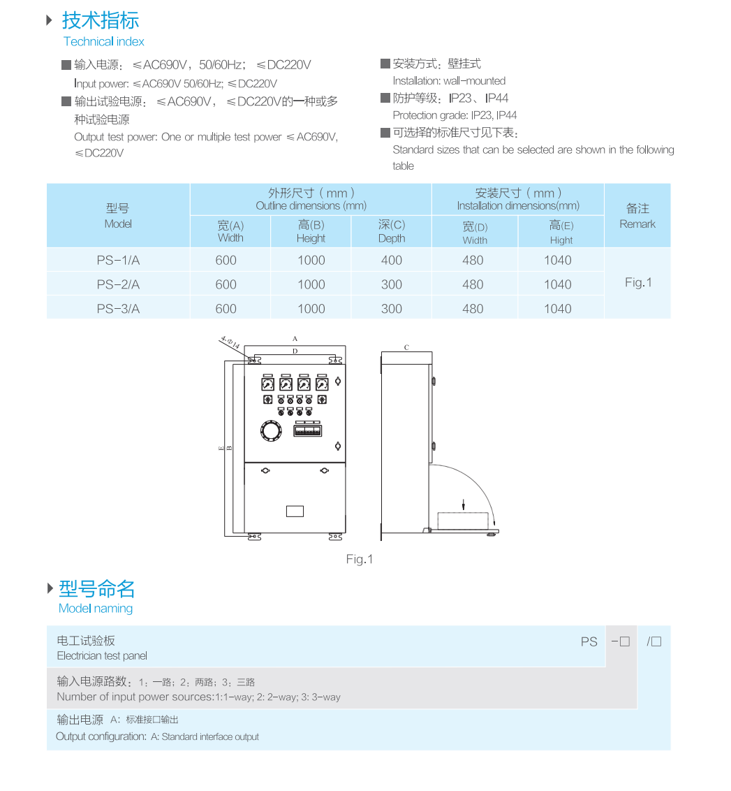 尺寸: 外形尺寸(寬高深)600mm×1000mm×300mm,安裝尺寸(寬高)480mm×1040mm 安裝方式: 壁掛式