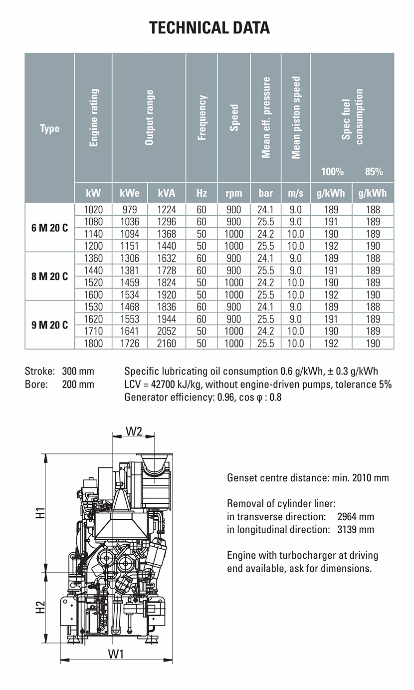 輸出容量: 1824kVA 燃油消耗: 190g/kWh