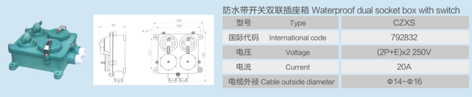 | JIS系列船用防水帶開關(guān)雙聯(lián)插座箱 | |||
