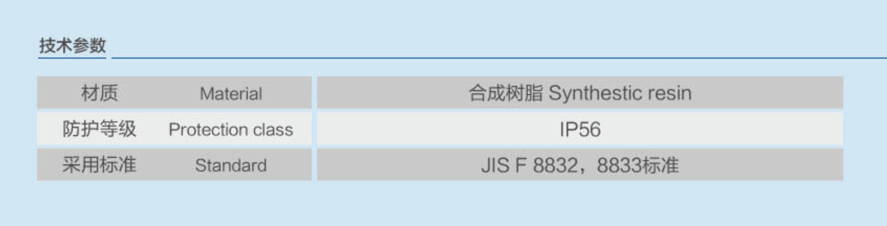 | 防護(hù)等級(jí): | IP56 | 材料: | 合成樹脂 |