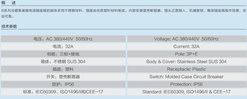 | B型系列冷藏集裝箱電源插座箱不帶監(jiān)視插座 | |||