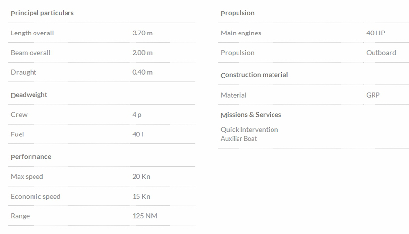 總長: 3.70m 航速: 20kn