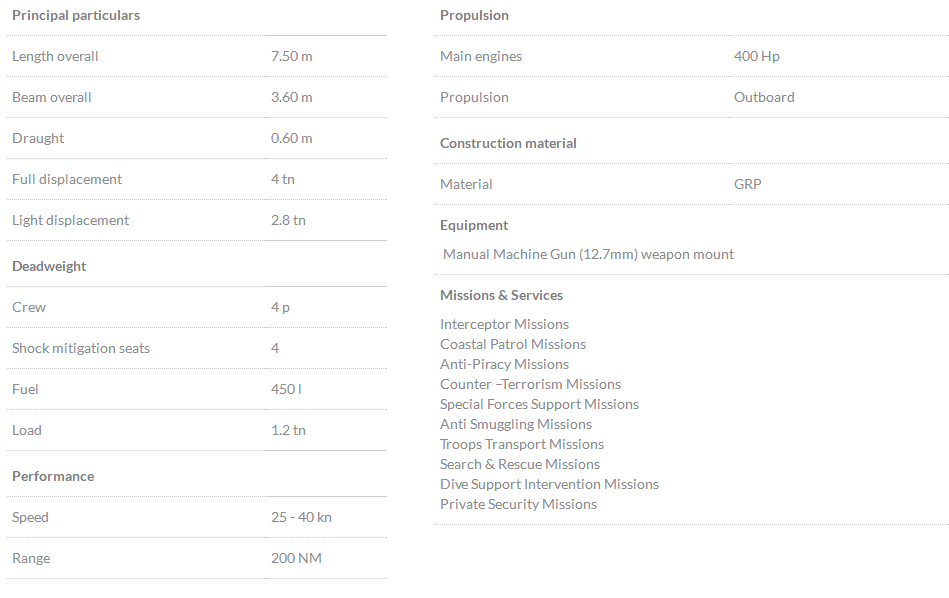 總長: 7.50m 航速: 40kn