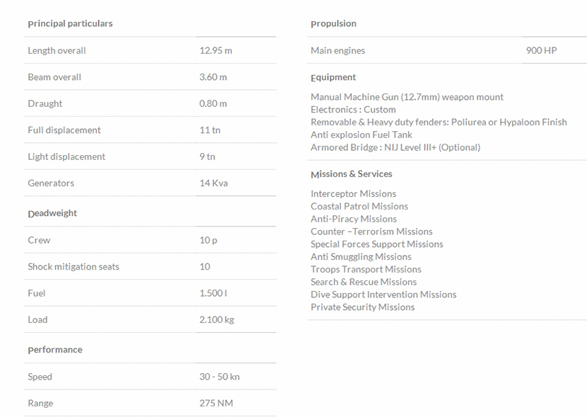 總長: 12.95m 航速: 50kn