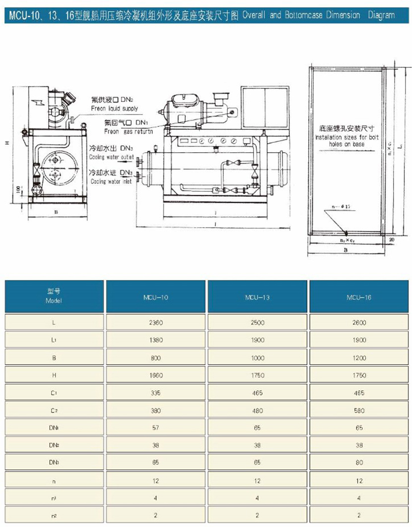 電源: (主電路-AC380V 3Φ 50Hz)/(控制電路電源)AC220V 1Φ 50Hz 型式: 臥式殼管式、鋁黃銅管(排熱管雙面強化,具有高效冷凝貯液作用)