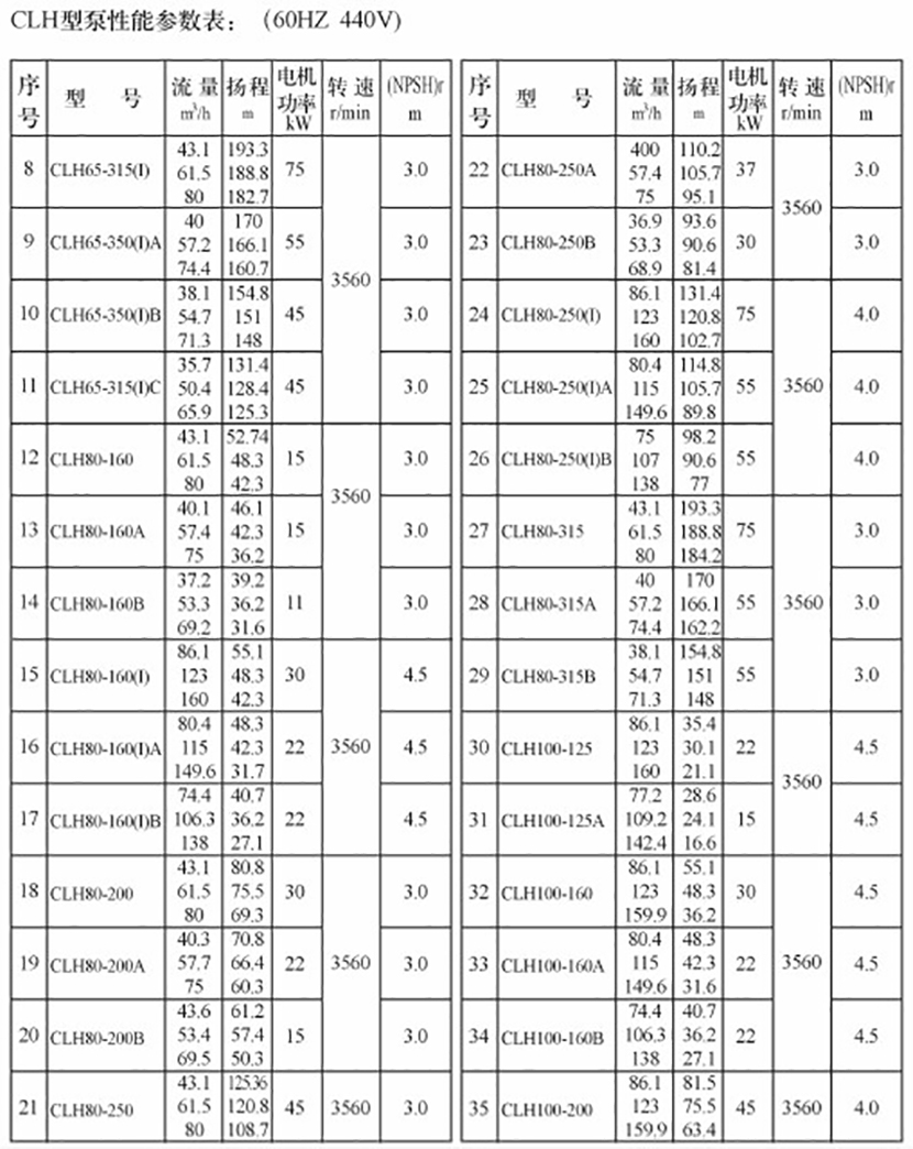 流量: 32.5m3/h 汽蝕余量: 3.0m