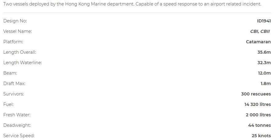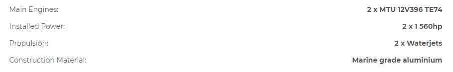 發動機功率: 2×1560hp 推進裝置: 2×Waterjets