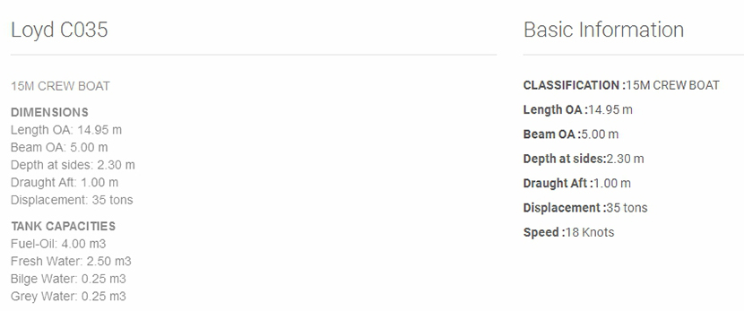 總長: 14.95m 航速: 18kn