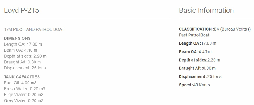 總長: 17.00m 航速: 40kn