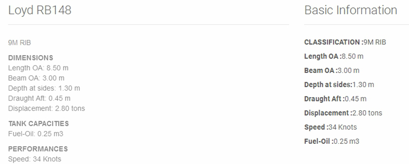 總長: 8.5m 航速: 34kn