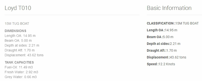 總長: 14.95m 航速: 12.2kn
