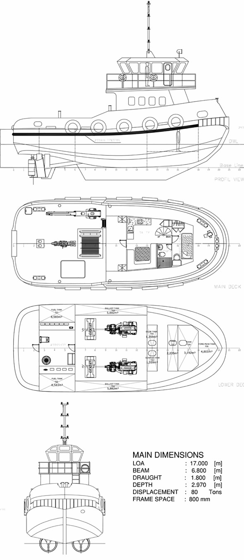 總長: 17m 航速: 11kn