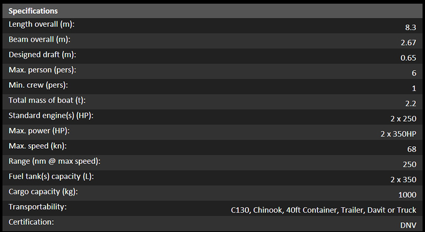 總長: 8.3m 航速: 68kn