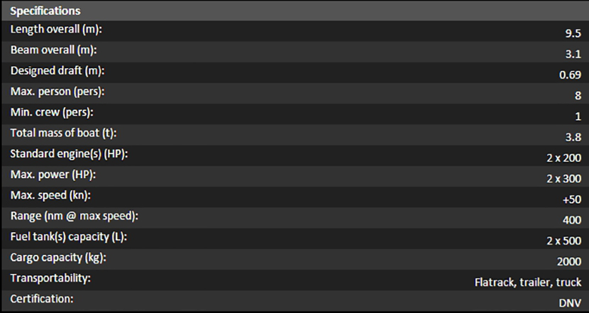 | 總長(zhǎng): | 9.5m | 航速: | 50kn |