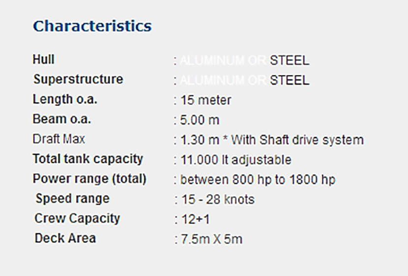 | 總長: | 15m | 航速: | 28kn |