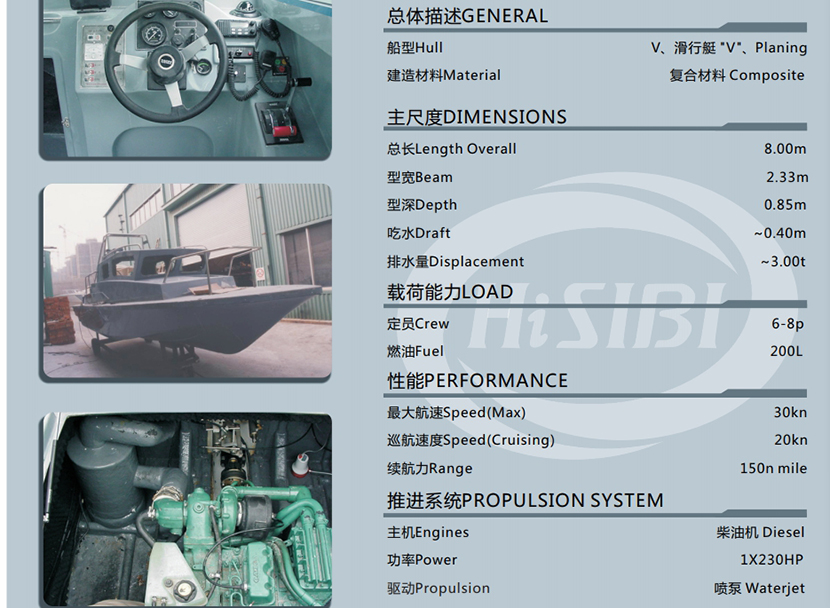 發動機功率: 1×230hp 推進裝置: Waterjet