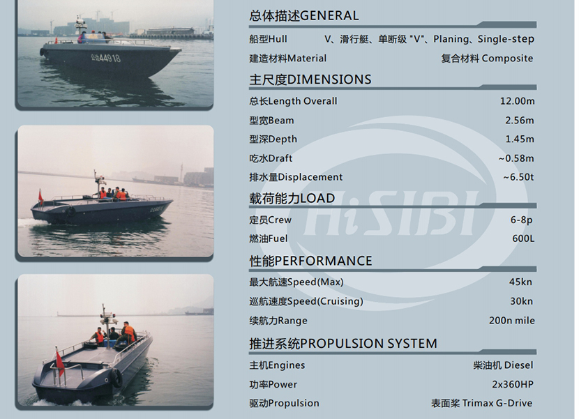 總長: 12.50m 航速: 40kn