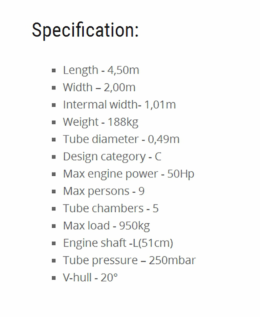 總長: 4.50m 最大乘員: 9p