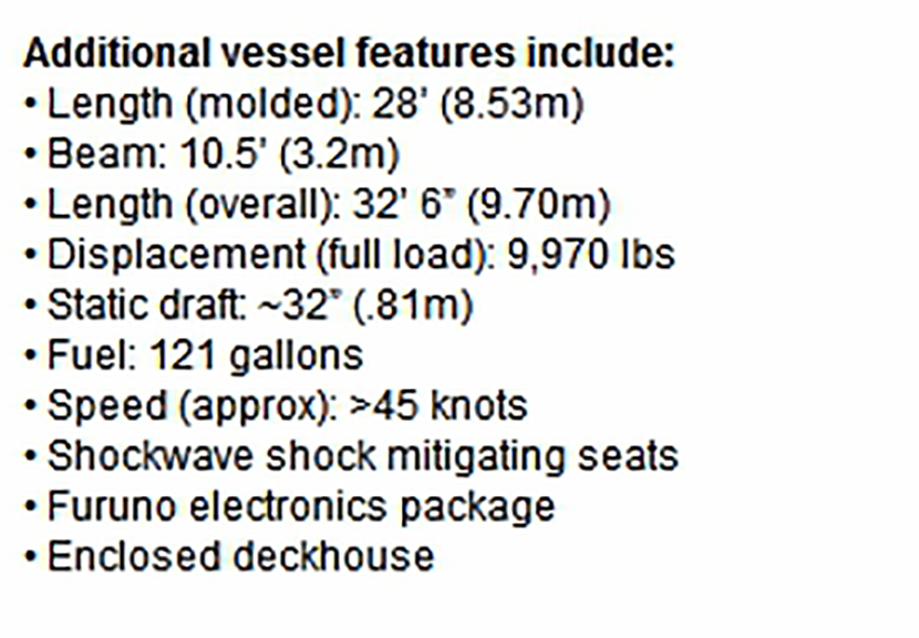 總長: 11m 燃油容量: 121 gallons
