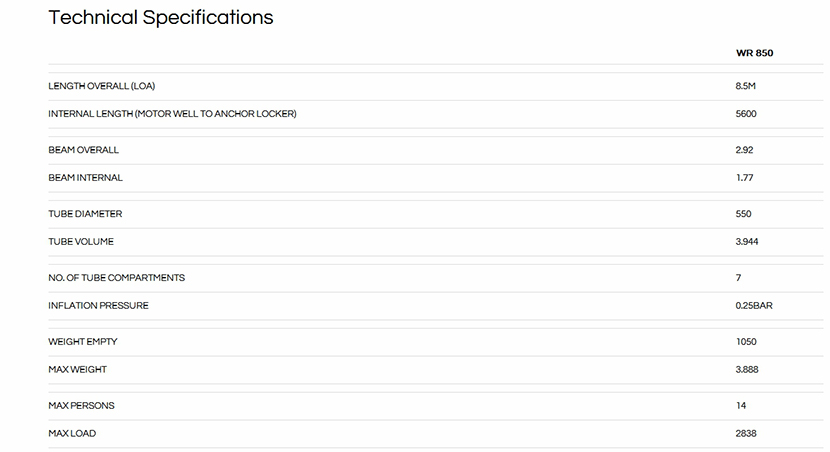 總長: 8.5m 最大乘員: 14p