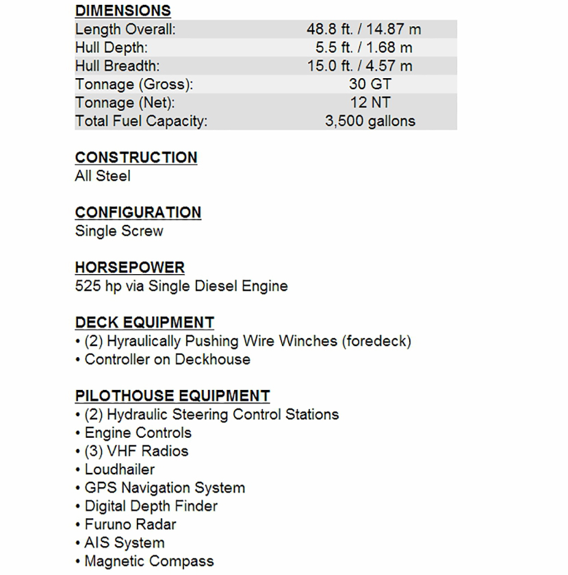 | 總長: | 14.87m | 發(fā)動機(jī)功率: | 525hp |