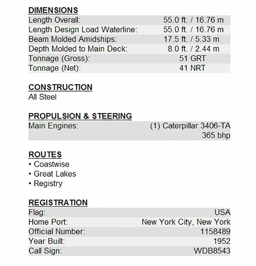 總長: 16.76m 發動機功率: 365hp