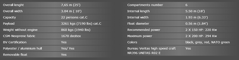 總長: 7.65m 發動機功率: 2×200hp