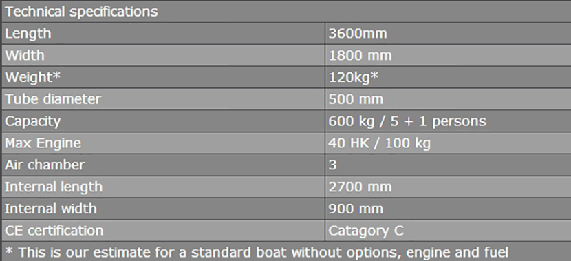 總長: 3.6m 最大乘員: 6p