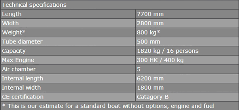 總長: 7.7m 最大乘員: 16p