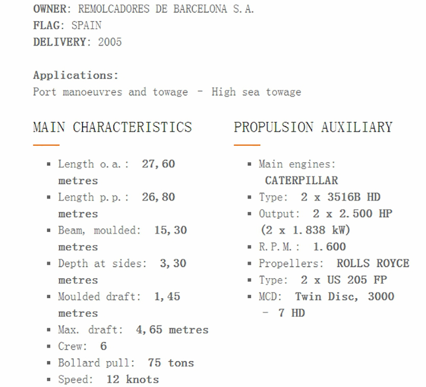 燃油容量: 63m3 發動機功率: 2x1838kw