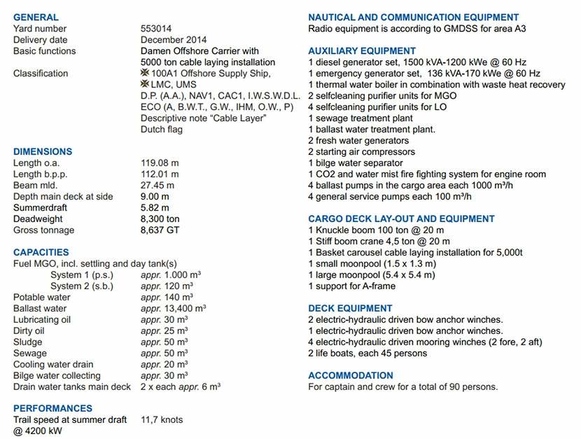 總長: 119.08m 航速: 11.7kn