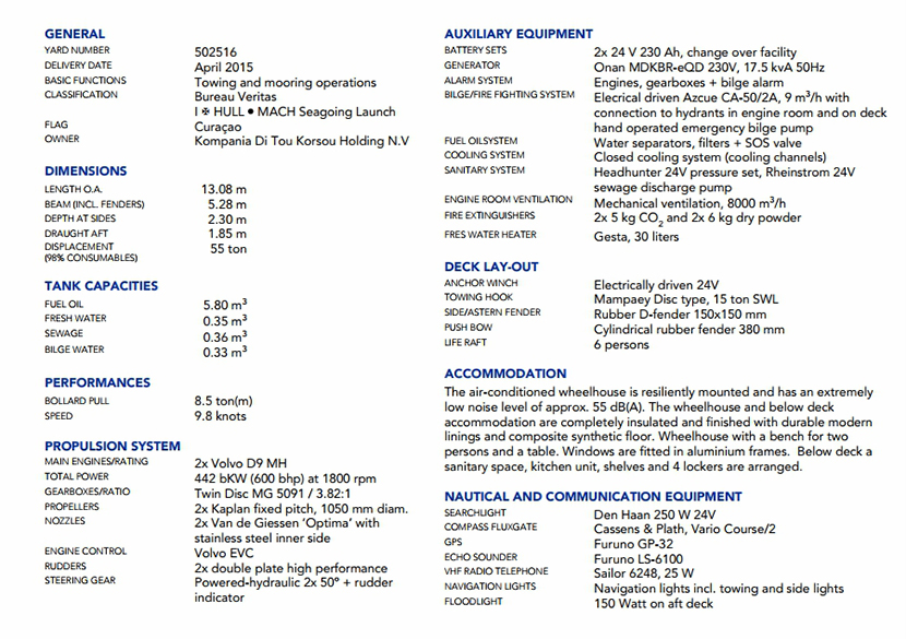 發(fā)動機品牌: Volvo D9MH 齒輪箱: Twin Disc MG50591