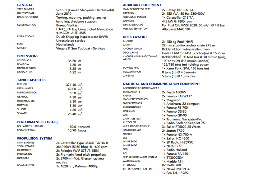 | 發(fā)動機(jī)功率: | 3840bkW at 1600rpm | 推進(jìn)裝置: | 2×Promarin fixed pitch propellers |