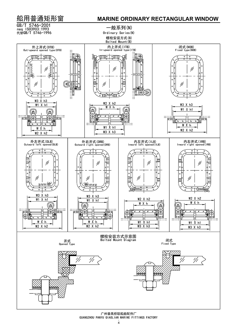 | 船用螺栓安裝式普通矩形窗 | |||