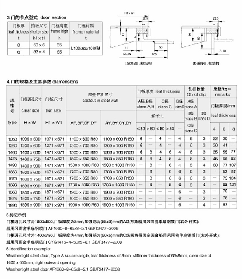 | 船用風雨密單扇鋼質(zhì)門加裝固定窗 | |||