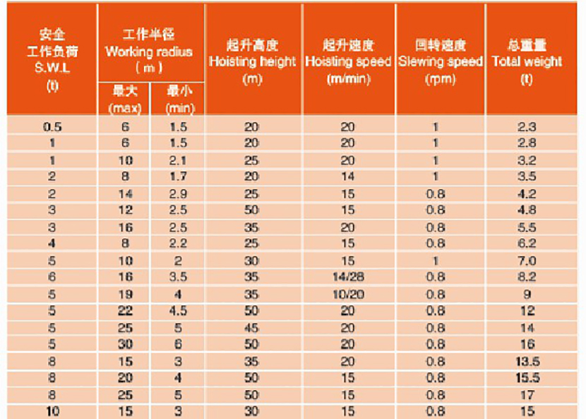 | 起升速度: | 15m/min | 回轉速度: | 0.8rpm |