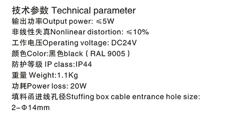 輸出功率: ≤5W 工作電壓: DC24V