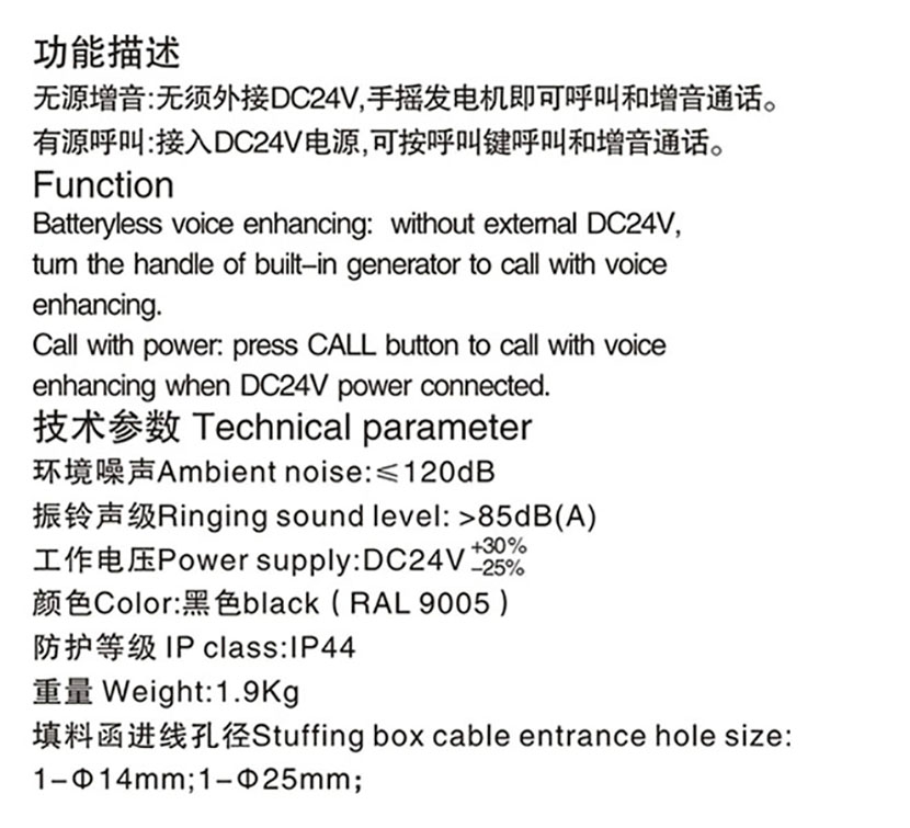 防護等級: IP44 環境噪聲: ≤120dB