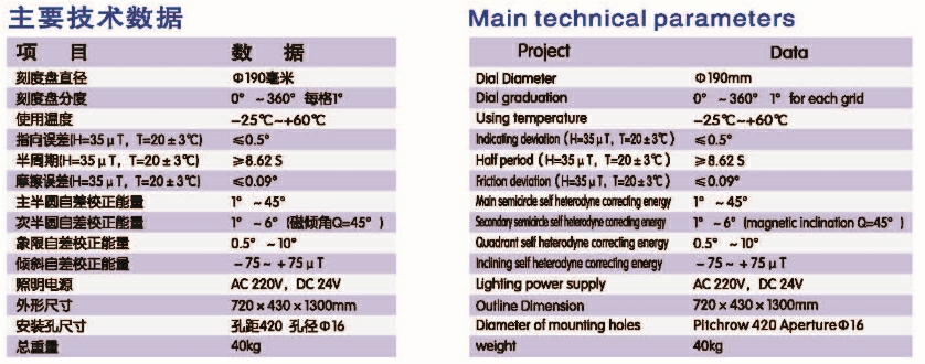 | 主半圓自差校正能量: | 1°~45° | 次半圓自差校正能量: | 1°~6° |