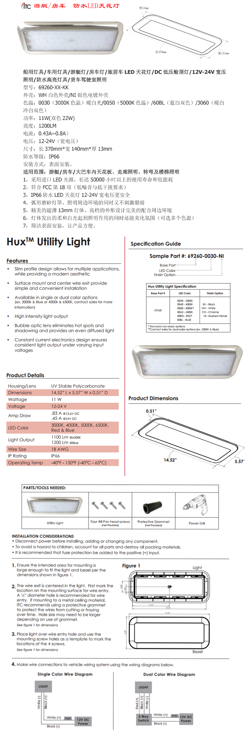 功率: 11W 尺寸: 370×140×13mm
