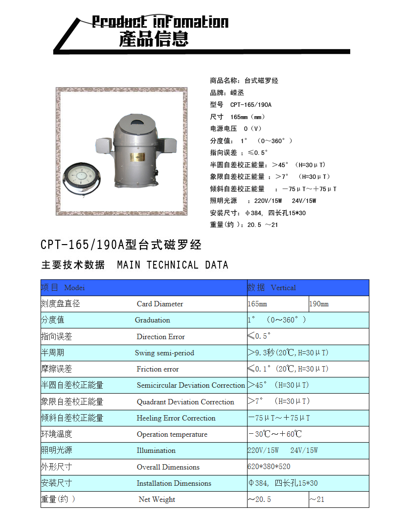 使用溫度: -30℃~+60℃ 指向誤差: ≤0.5°
