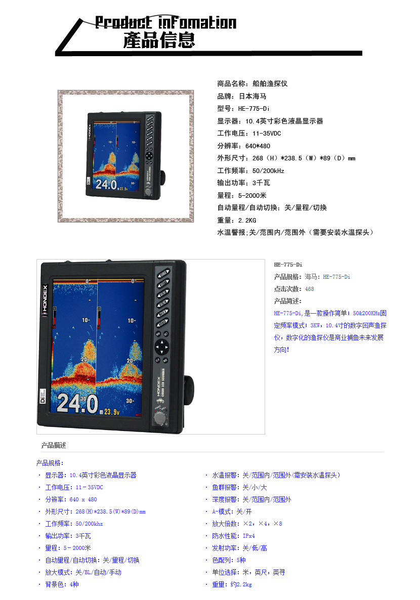 彩色液晶水平聲吶