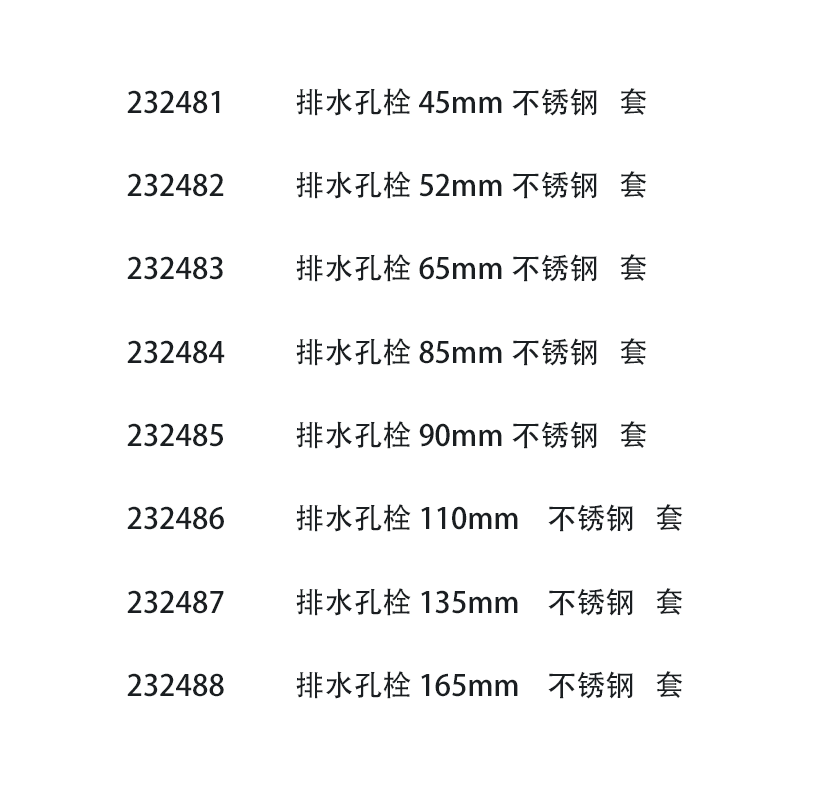 類型: 排水孔栓