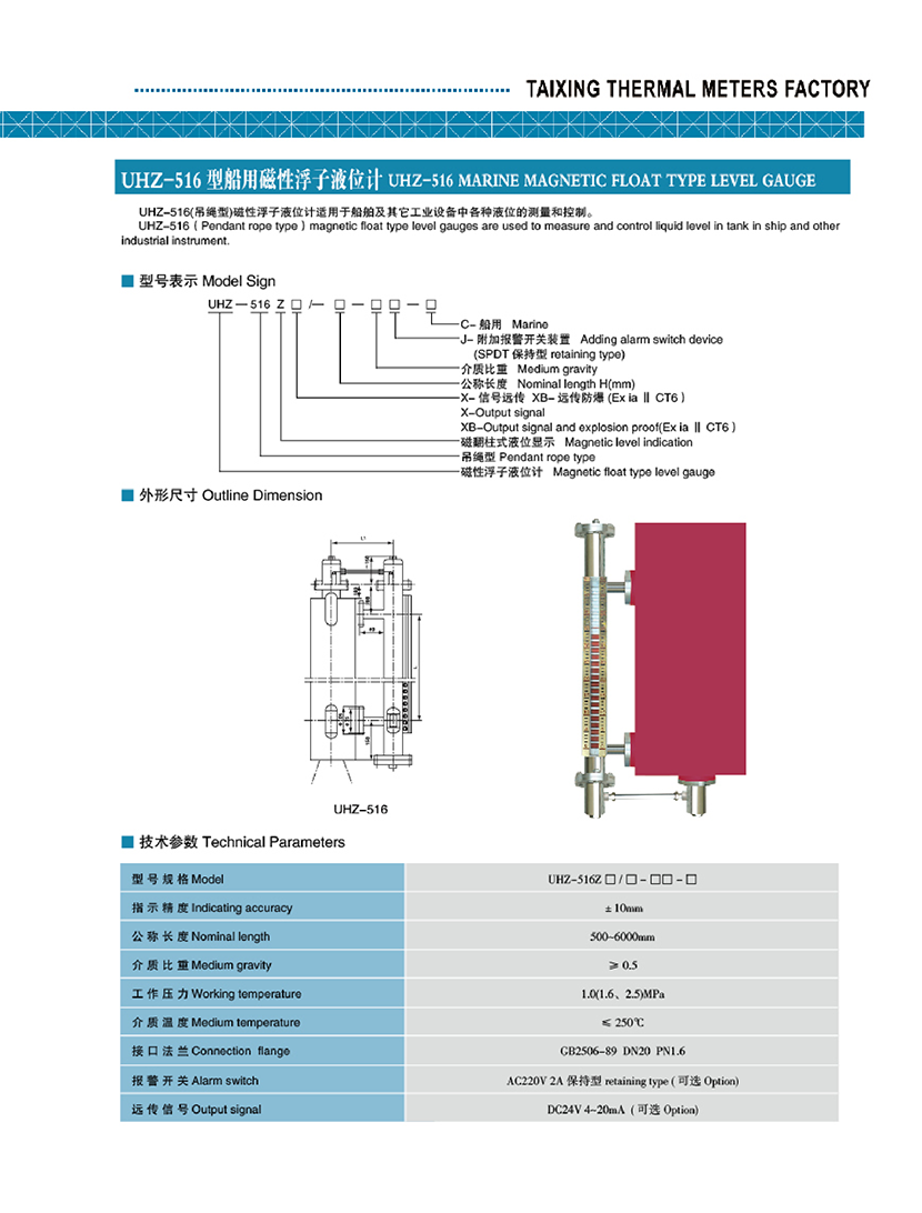 UHZ-516型船用磁性浮子液位計