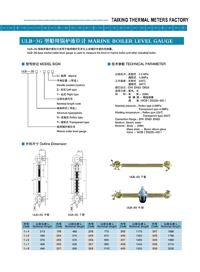 ULB-3G型船用鍋爐液位計