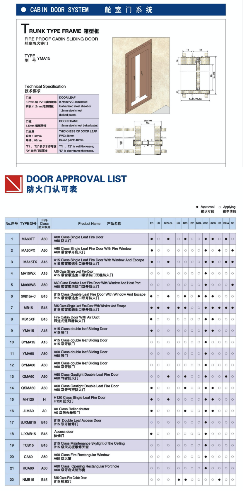 艙室門系統箱型框艙室防火門