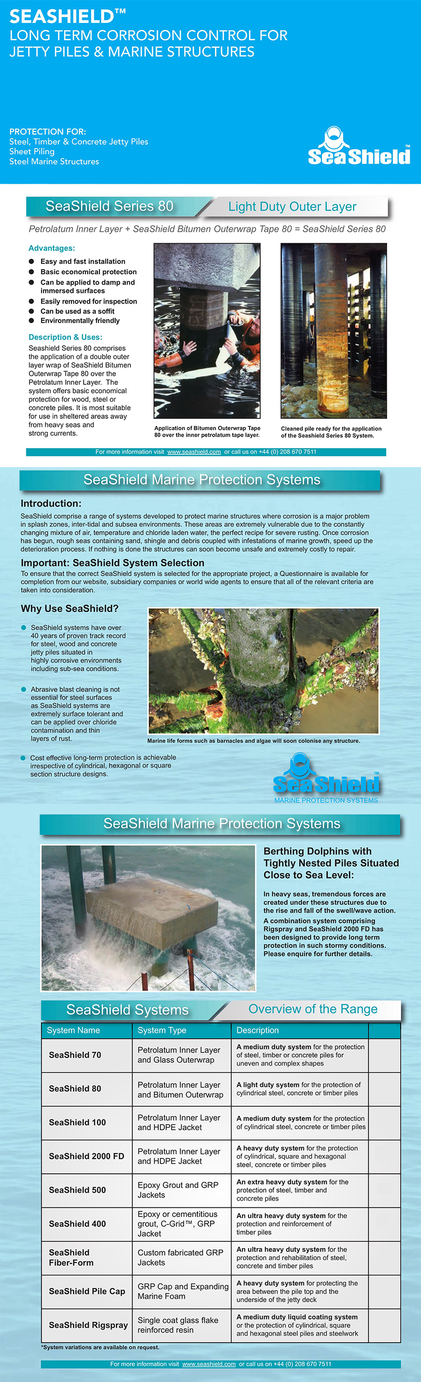 組成部分: Petrolatum inner layer; SeaShield bitumen outerwrap tape 80 其他優勢: Easy and fast installation; Basic economical protection; Easily removed for inspection; Can be used as a soffit; Environmentally friendly