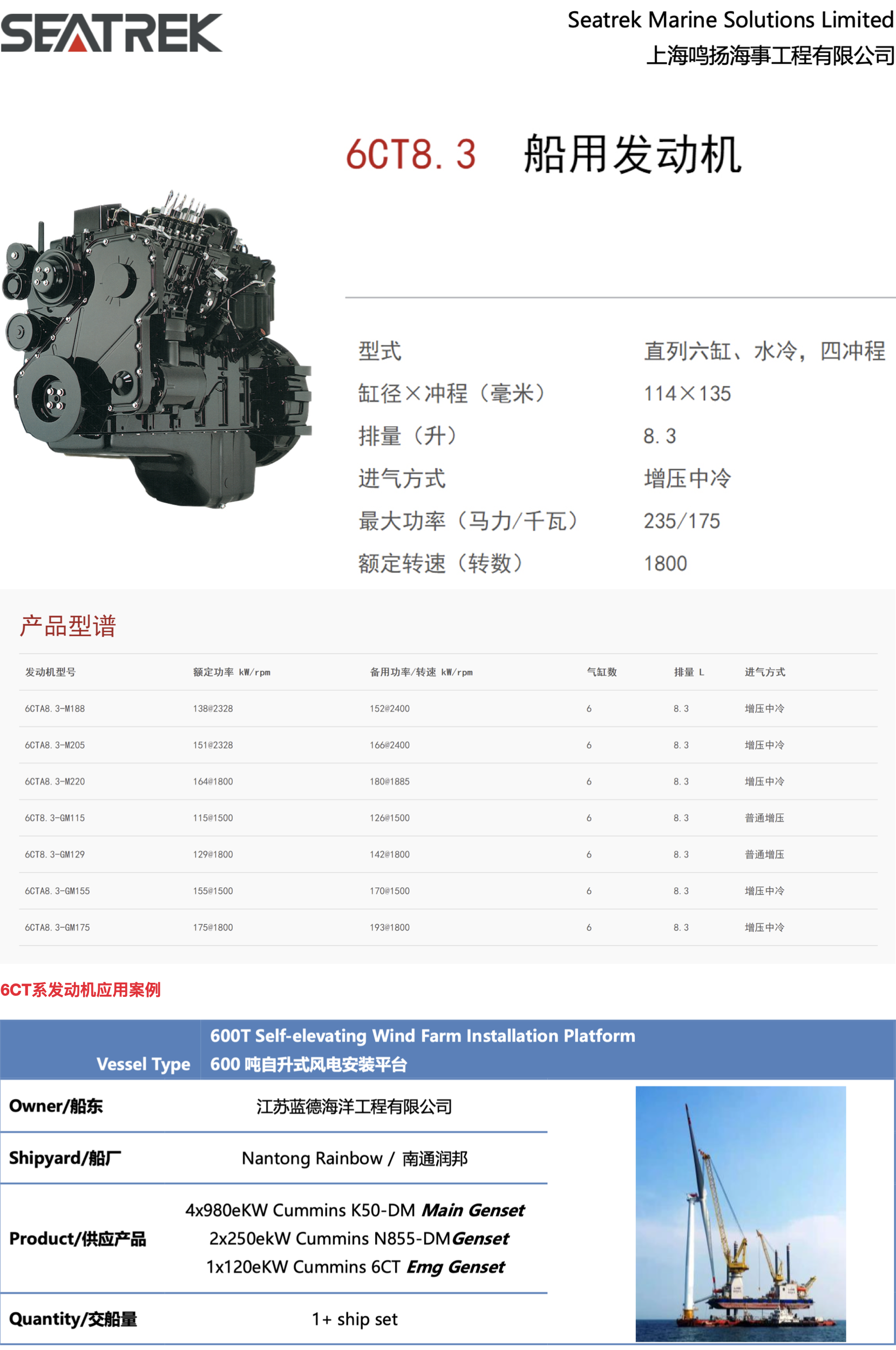 排量: 8.3L 進氣方式: 增壓中冷/普通增壓