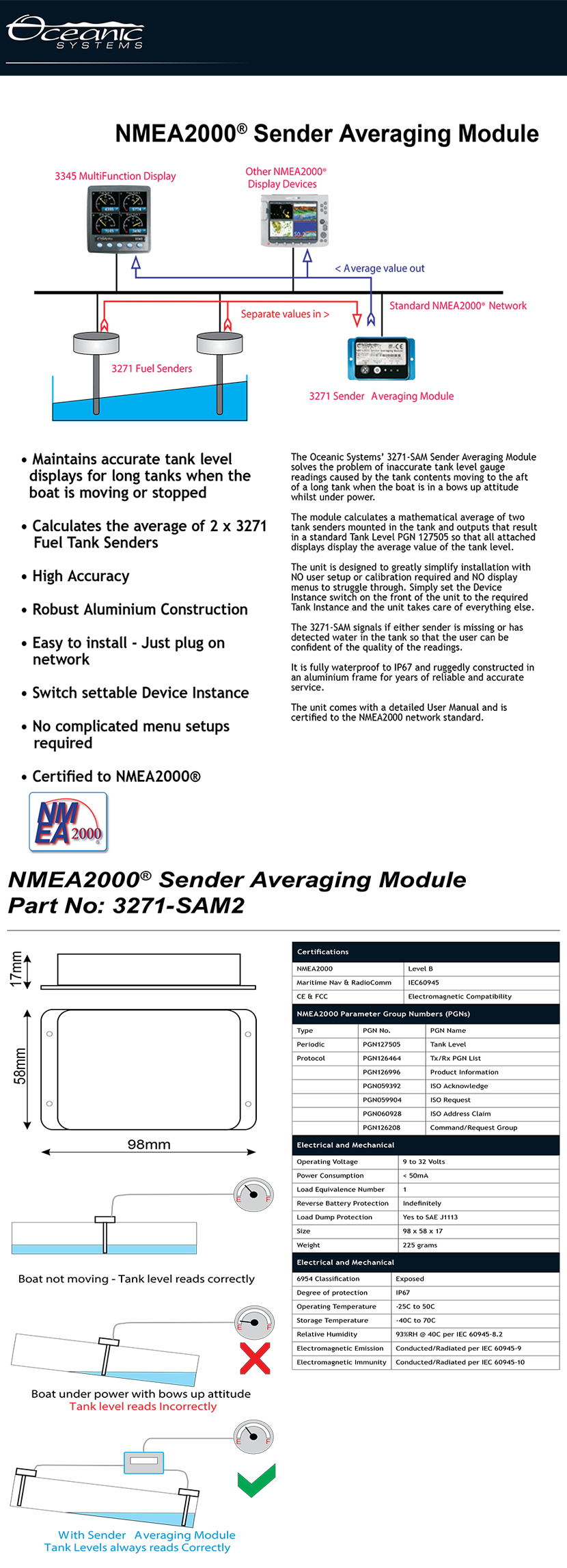 是否需要校準: 實現作用: 糾正因船只航行或停止時狹長型油箱內燃油流動傾斜導致的液位測量誤差